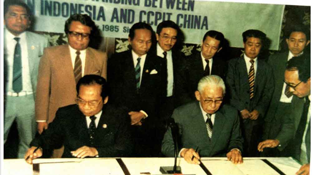 Penandatangan kerja sama antara Kadin Indonesia dan CCPIT di Singapura, 7 Mei 1985--