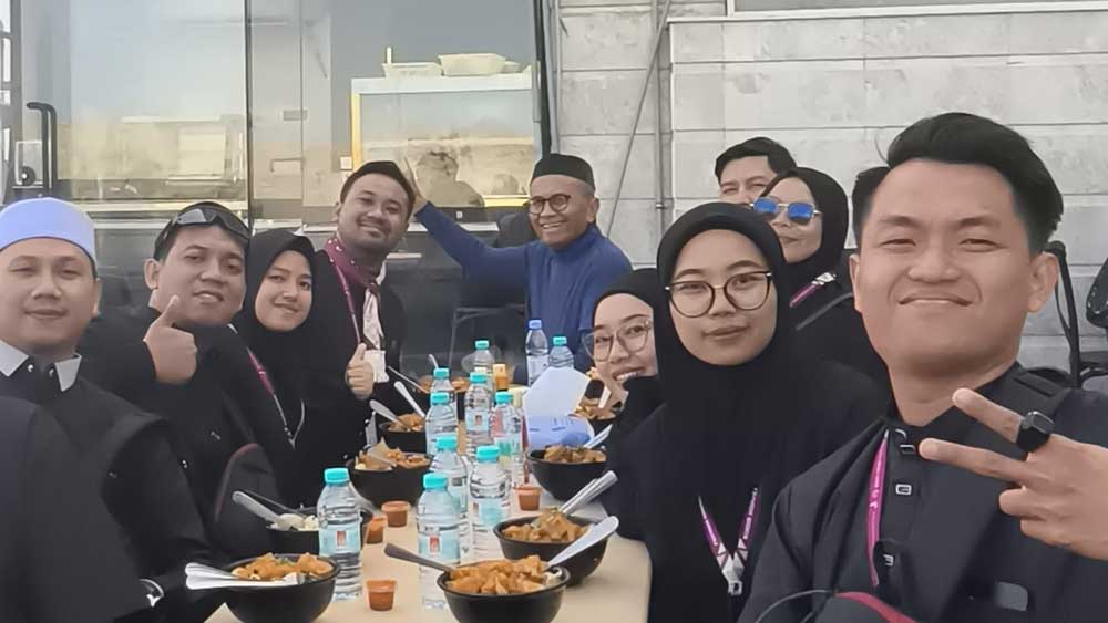 FOTO makan siang di Madinah itu saya kirim ke juragan mereka –dengan rasa bangga. Itulah foto anak-anak muda yang berprestasi di Cimory.