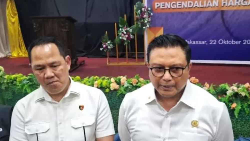 Direktur Pengawasan Penerapan Standar Keamanan dan Mutu Pangan Bapanas Hermawan (kanan) di Baruga Lappo Ase Bulog, Makassar, Sulawesi Selatan, Rabu (22/10/2025)-Darwin Fatir-ANTARA