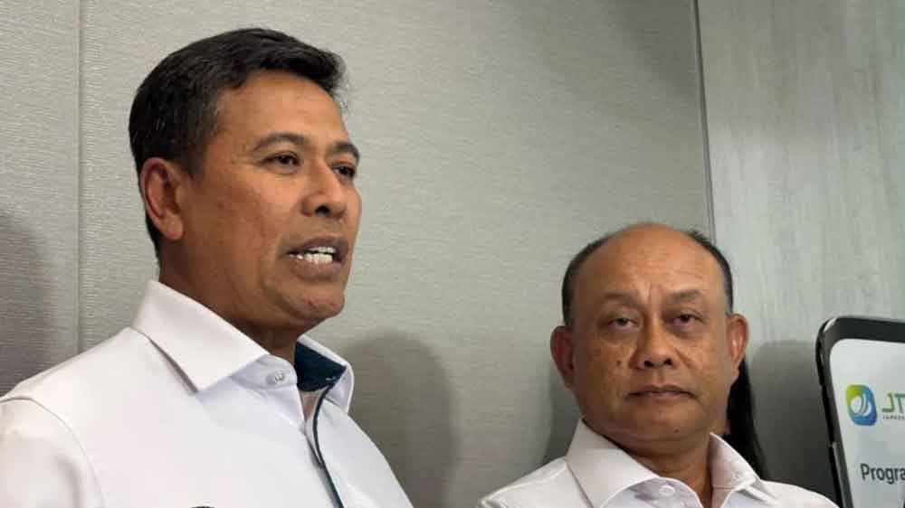 Direktur Utama BPJS Ketenagakerjaan Anggoro Eko Cahyo (kiri) dan Kepala BGN Dadan Hindayana memberikan keterangan kepada wartawan usai penandatanganan nota kesepahaman di Jakarta, Senin (21/4/2025)-Prisca Triferna-ANTARA